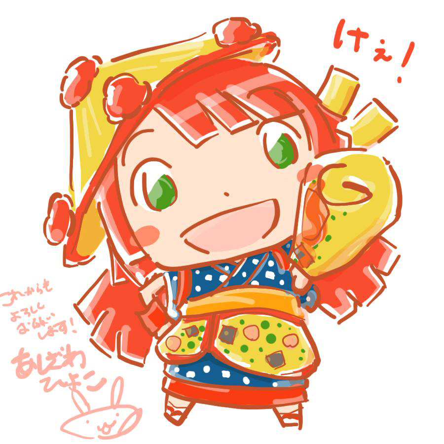 紅しょうが色の髪、海苔色の目が特徴です。